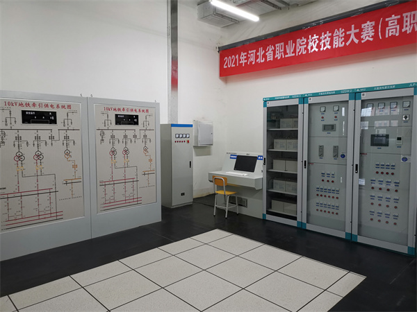 本实训室模拟城轨车站牵引降压混合变电所,由城轨主变电所系统图、牵引供电系统图、牵引供电设备、低压配电设备、上网柜设备、电力SCADA设备和交直流屏设备等组成。