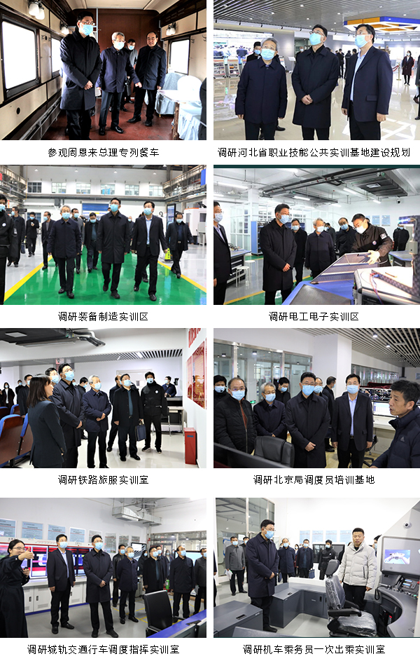 王景武一行到铁路文化广场和河北基地,重点调研了双创基地、装备制造、机车车辆检修线、电梯维修、高端焊接、机车乘务员一次出乘、中国铁路北京局调度员培训基地、铁路旅服、铁路客票系统、铁路12306客户服务中心等专业实训场(室),在城轨“三站两区间”实训场,王景武一行还登乘城轨车辆,亲身体验了城市轨道交通的运营过程。
