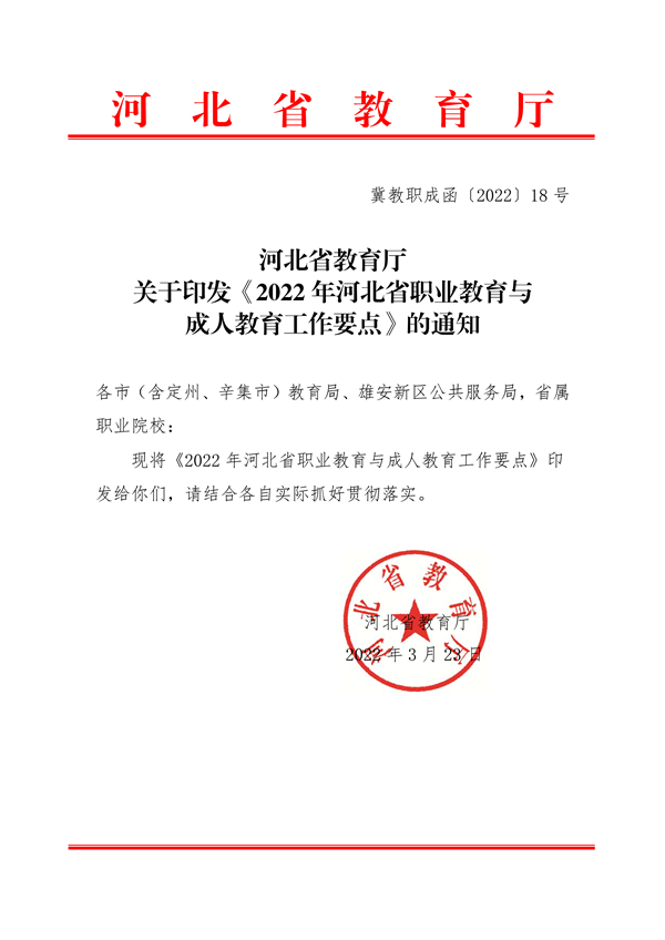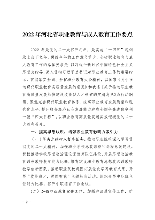 冀教职成函【2022】18号-2022年河北省职业教育与成人教育工作要点