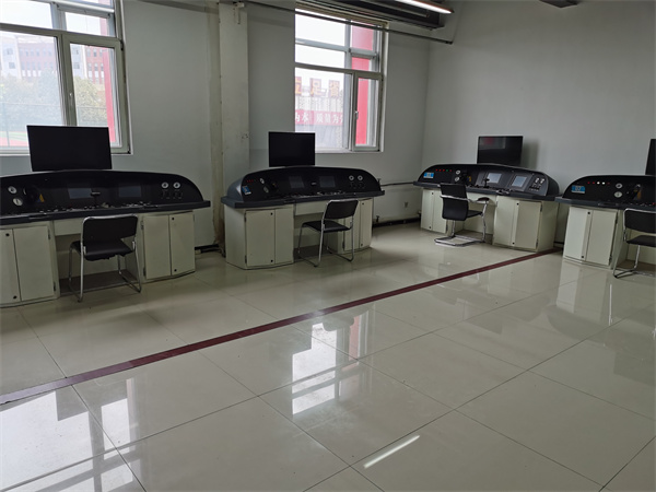 本实训室由一台SFM13型城轨车辆模拟驾驶装置、全景环幕、教员控制台、五台小型城轨车辆模拟驾驶器、观摩投影、网络柜等系统组成。城轨车辆模拟驾驶器为一级驾驶训练系统,城轨车辆模拟驾驶装置为二级驾驶训练系统。