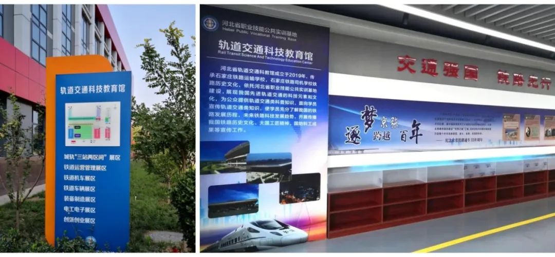 河北省轨道交通科技教育馆依托轨道学院雄厚的专业资源,由河北基地和河北省铁道学会共同建设运营。该馆坐落于河北轨道运输职业技术学院开发区校区,展室面积约35000平米。下设铁路文化广场、铁道运营管理、铁道机车车辆、城市轨道交通、装备制造、电工电子、现代物流、创新创业等展区。该馆面向大中小学学生、河北基地培训学员、社会公众等人群进行科普宣传。