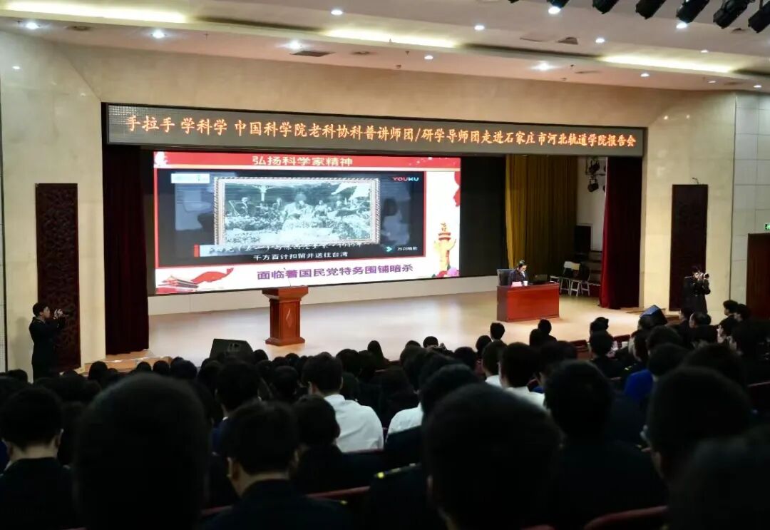 为贯彻落实习近平总书记关于科技创新和科学普及的重要论述,在全社会营造良好的科学氛围,助力学校全体师生科学素质不断提升,10月22日,学校召开“与国同庆七十五弦歌不辍,薪火相传砥砺奋进赓续荣光——手拉手、学科学,中国科学院老科协科普讲师团、研学导师团走进石家庄市河北轨道学院”讲座活动。该活动是由河北省老科协铁道分会主办,河北轨道运输职业技术学院承办的公益性科普活动。原中国科学院研究生院应技所常务所长、高级工程师、中国生物工程学会终身会员、中国宏观经济和高技术发展政策主编、中国科学院老科协科技报告团秘书长、中国科学院科学家宣讲团视频课件创作总策划高相银教授做客我校,以“科学家的故事——世界科学巨匠”为题为同学们作精彩报告。